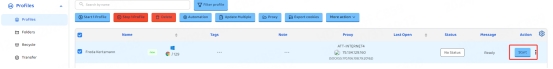 6. In the "Profile Management" tab, you will see the profile you created. Press the "Open" button to start the browser profile.