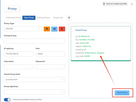 4. Click the "Check Proxy" button to check if the proxy is working properly