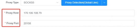 3.2 IP Whitelist: Fill in the text fields for Proxy Host, Proxy Port as shown below