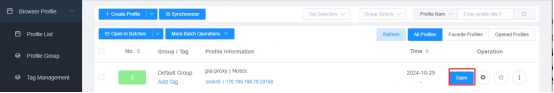 5. In the "Browser Window" tab, you will see the profile you created. Press the "Open" button to launch the browser profile.