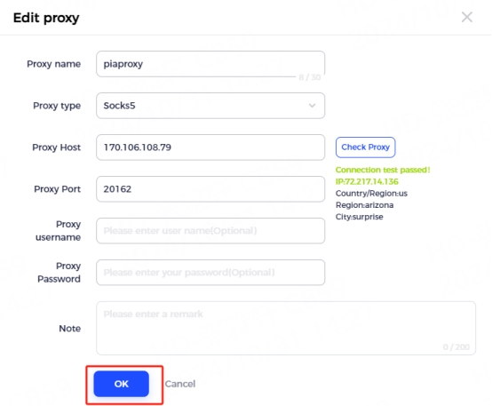 4. Click the "Check Proxy" button to check if the proxy is working properly