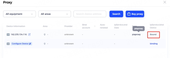 7. After binding the configured proxy server, you can close the window