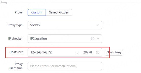 3.2 IP Whitelist: Fill in the text fields of Proxy Host and Proxy Port as shown below