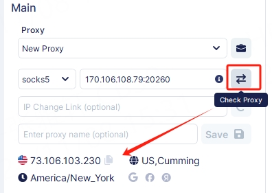 4. Click the "Check Proxy" button to check if the proxy is working properly