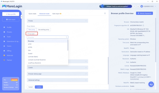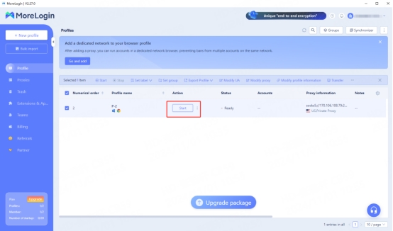 Please select the authentication method, proxy region, session type, etc. according to your business needs, and then you will see the generated list of available endpoints! Next, open the Morelogin application.