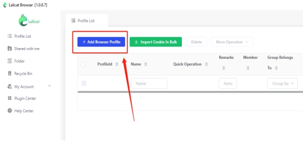 First, open Lalicat browser,Click to add browser profile
