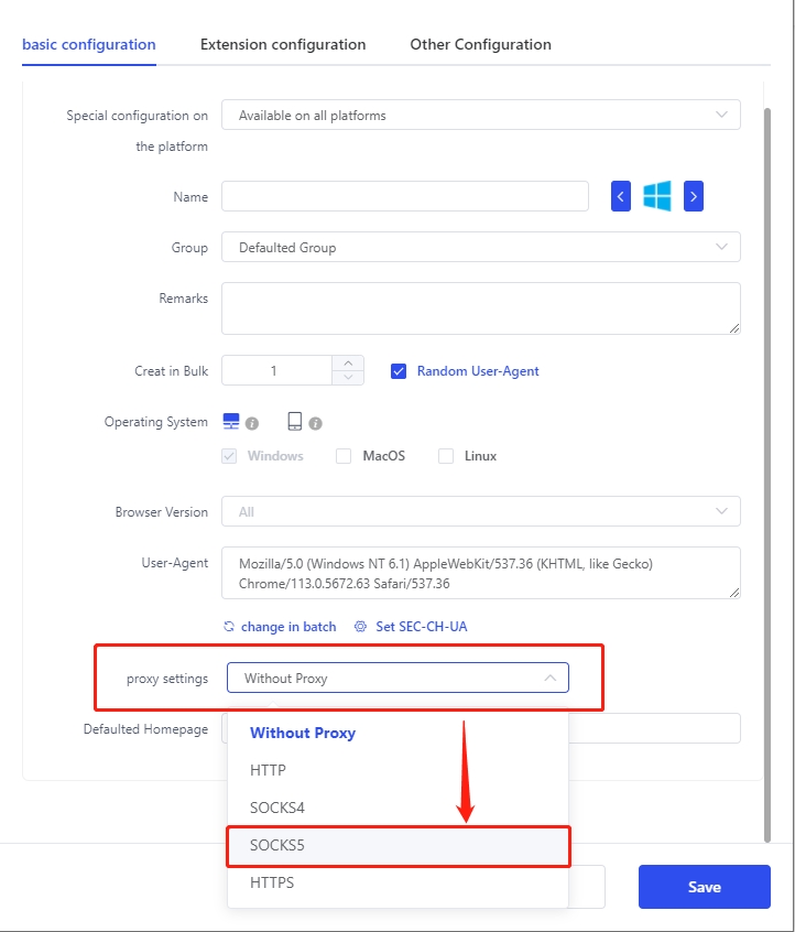 3. Click Proxy Settings and select SOCKS5