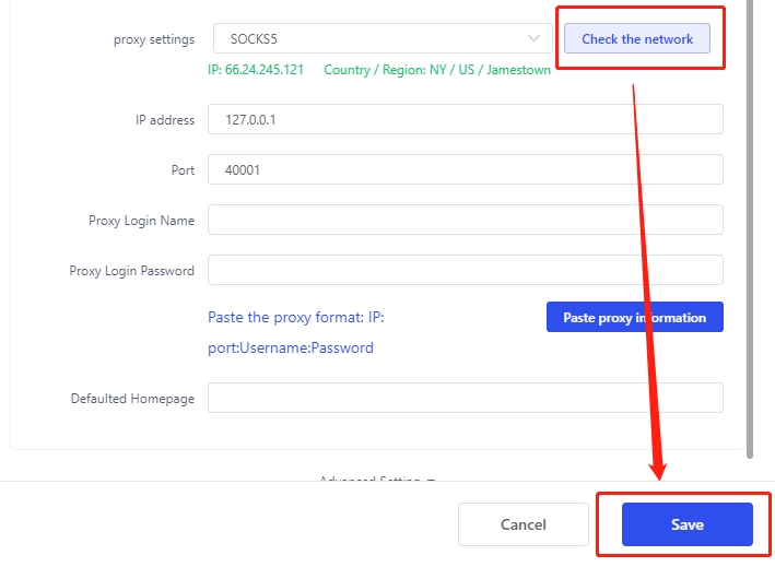 4. Enter the obtained IP address and port