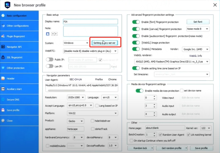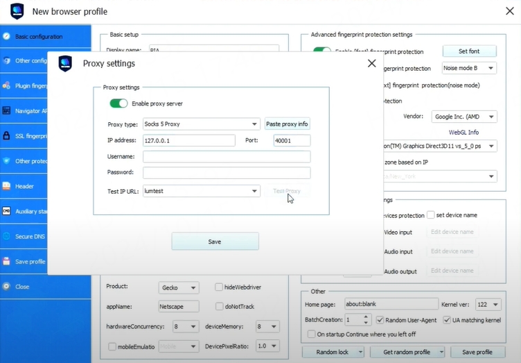 1.Log in to the Vmlogin interface > click "New Browser profile" > find "setting proxy server"