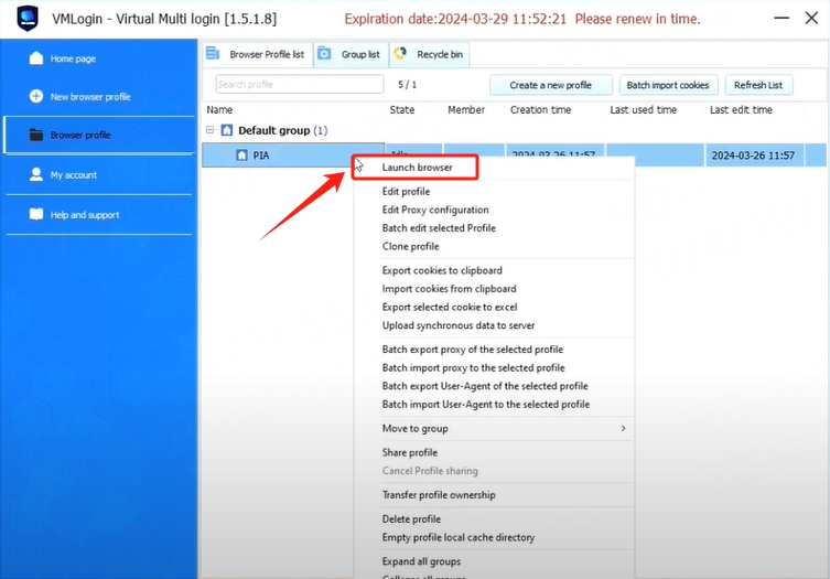 3. After saving, right-click the configured browser and click "Launch browser"