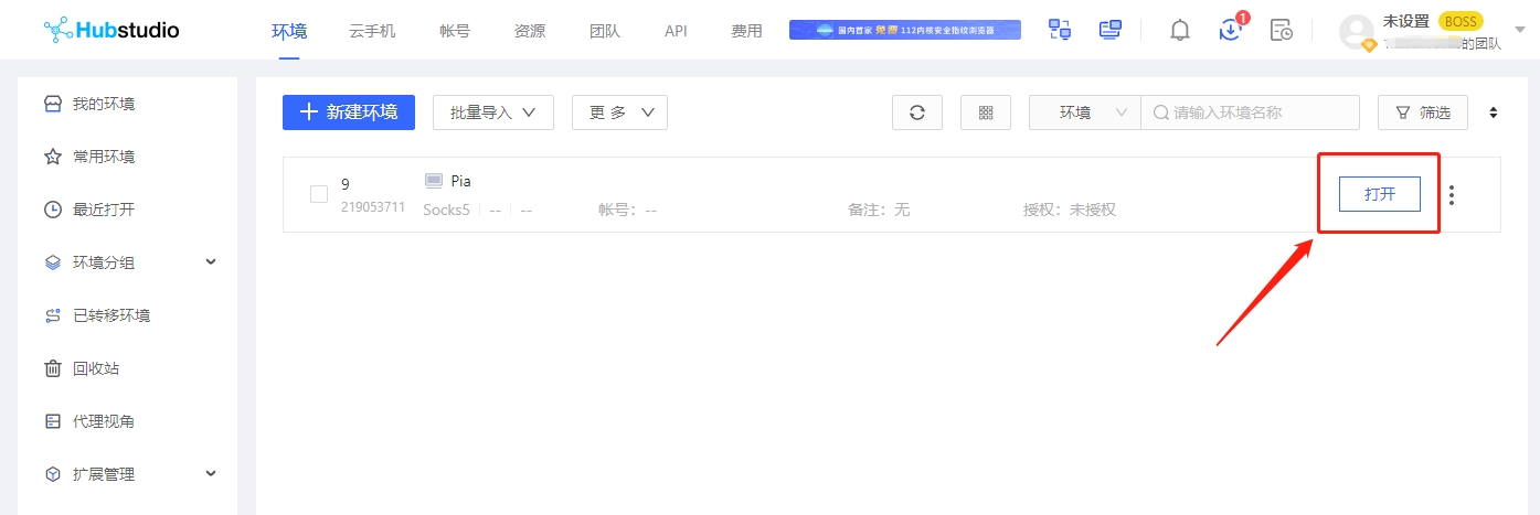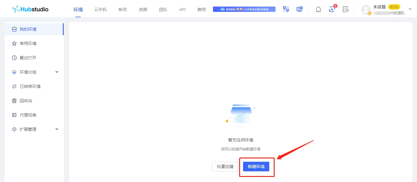 Open the Hubstudio browser, after logging in, click New Environment