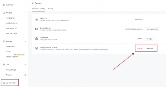 1. After entering the Personal Center, click "My Account" and click to open Google Authenticator