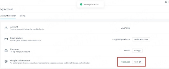 2. Before enabling Google authentication, you need to check whether the email address of the account contains an email with a verification code. Enter the verification code to confirm this operation