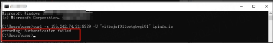 2.測試命令:【curl -x IP:port -U "Username:Password" ipinfo.io】