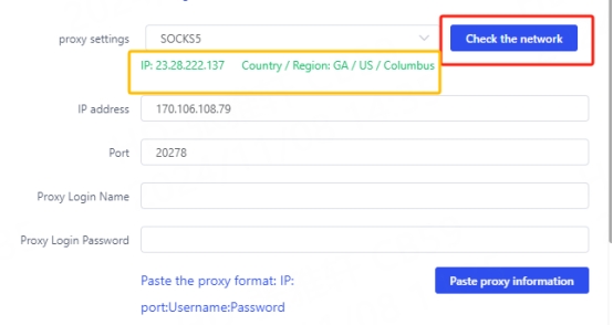 4、點擊“檢查代理”按鈕來檢查代理是否正常工作