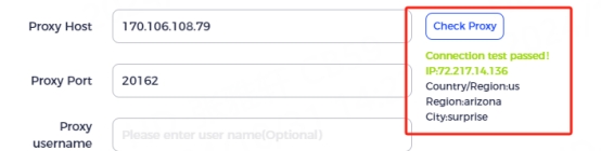 4、點擊“檢查代理”按鈕來檢查代理是否正常工作