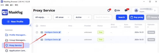 請根據您的業務需要選擇身份驗證方式、代理地區、會話類型等,之後,您將看到已生成的可用端點列錶!接下來,打開Maskfog應用。