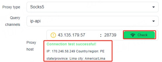 4、點擊“檢查代理”按鈕來檢查代理是否正常工作
