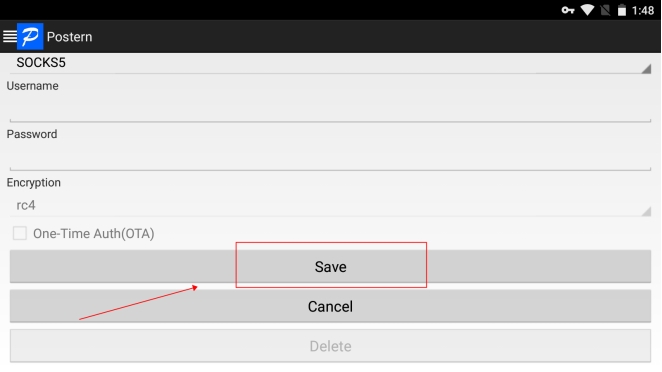 在 Postrn 軟件中,點擊添加代理服務器。填寫服務器名稱、地址和剛剛復製的端口號。