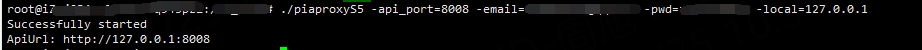 ./piaproxyS5 -api_port=API連接埠 -email=帳號信箱 -pwd=登入密碼 -local=內網路位址(預設為127.0.0.1)
